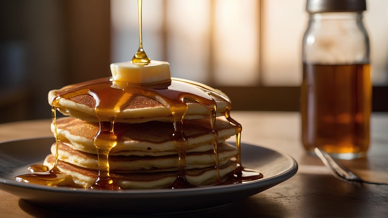 오늘은 팬케이크와 시럽, 이 두 가지를 집에서 손쉽게 만들어 보세요! 부드럽고 달콤한 맛이 조화를 이룹니다.